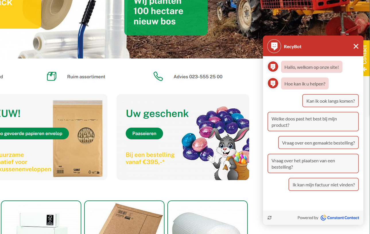 Dankzij de chatbot van onze klant Recypack worden hun klanten razendsnel geholpen met hun vraagstuk.