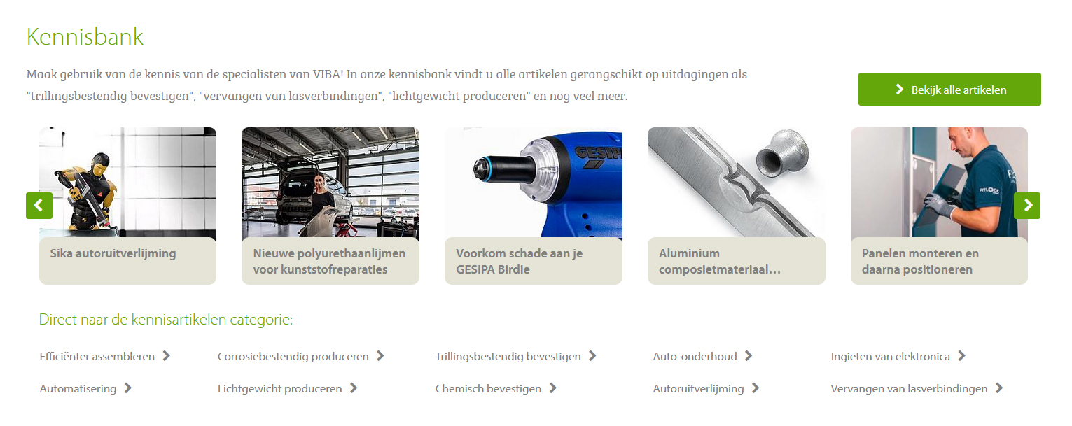 Onze klant Viba heeft veel tijd geinvesteerd in het maken van een waardevolle kennisbank vol informatieve artikelen.