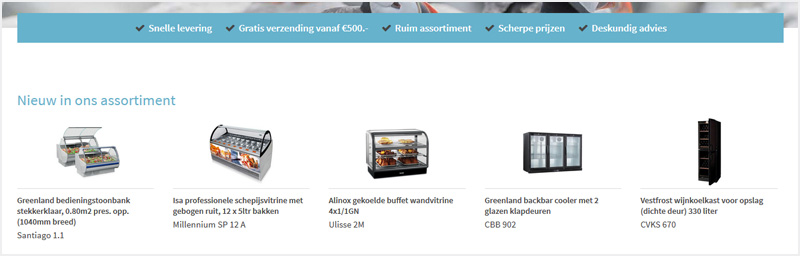 Op de homepage is het vooral van belang om te zorgen dat alle informatie die de bezoeker nodig heeft om een indruk te vormen van uw bedrijf aanwezig is. Daarnaast is het belangrijk om uw bezoekers naar uw assortiment te leiden, bijvoorbeeld met een aantal producten als preview en een knop ‘bekijk assortiment’.