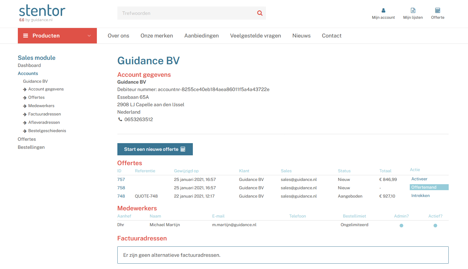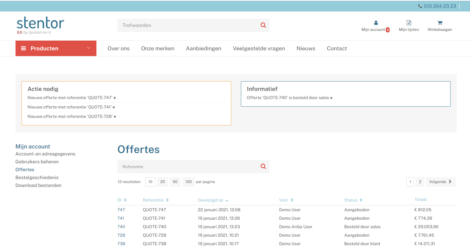Met de nieuwe online offerte tool kan uw verkoopafdeling eenvoudig via de webshop een offerte voor de klant samenstellen en versturen of direct een order plaatsen.