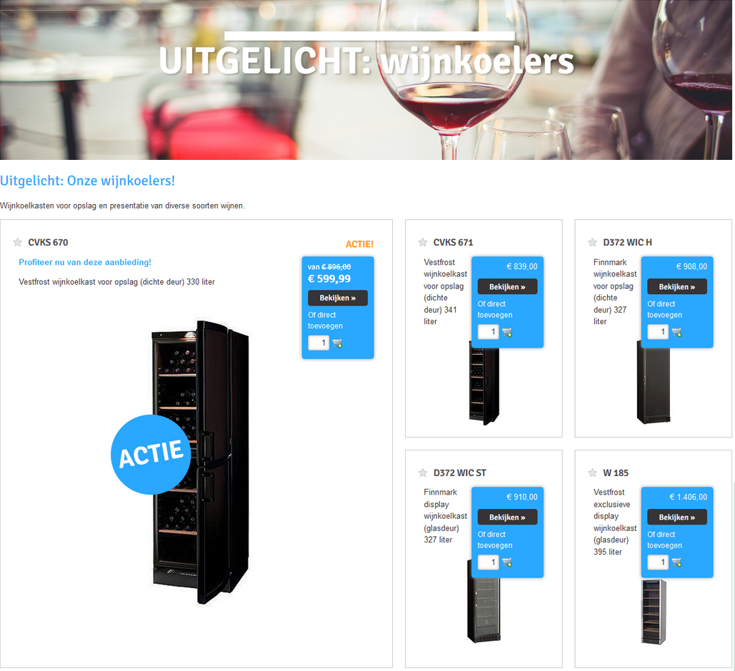 Stel zelf een sectie samen met artikelen die u onder de aandacht wilt brengen. Denk bijvoorbeeld aan uw seizoensartikelen of artikelen die bij hetzelfde thema of een bepaalde doelgroep horen. De samengestelde secties kunnen op verschillende pagina's worden geplaatst.