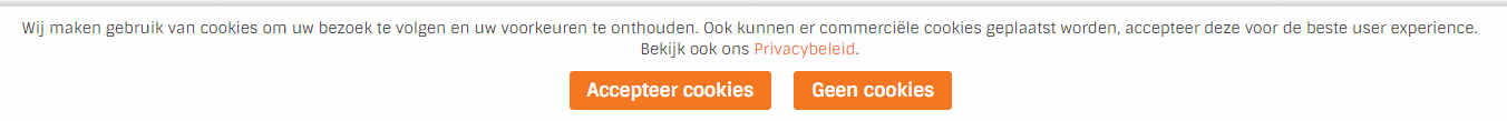 In webeditor is een cookie bar element beschikbaar waarmee de bezoeker zijn cookie keuze toch nog kan aanpassen. Voor bezoekers die cookies geaccepteerd hebben wordt onderstaande melding getoond. De bezoeker kan aangeven om toch geen cookies te accepteren.