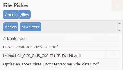 Naast de al aanwezige image picker is er nu ook een file picker, waarmee documenten snel kunnen worden gekozen en worden toegevoegd aan de pagina.
