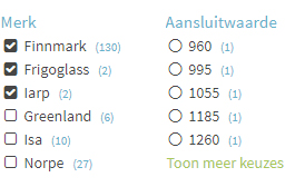 Bij de filters kan er gekozen worden tussen checkboxes en radiobuttons. Bij de checkboxes kunnen de gebruikers meerdere waardes tegelijkertijd selecteren. Bij de radiobuttons is er maar 1 optie mogelijk.