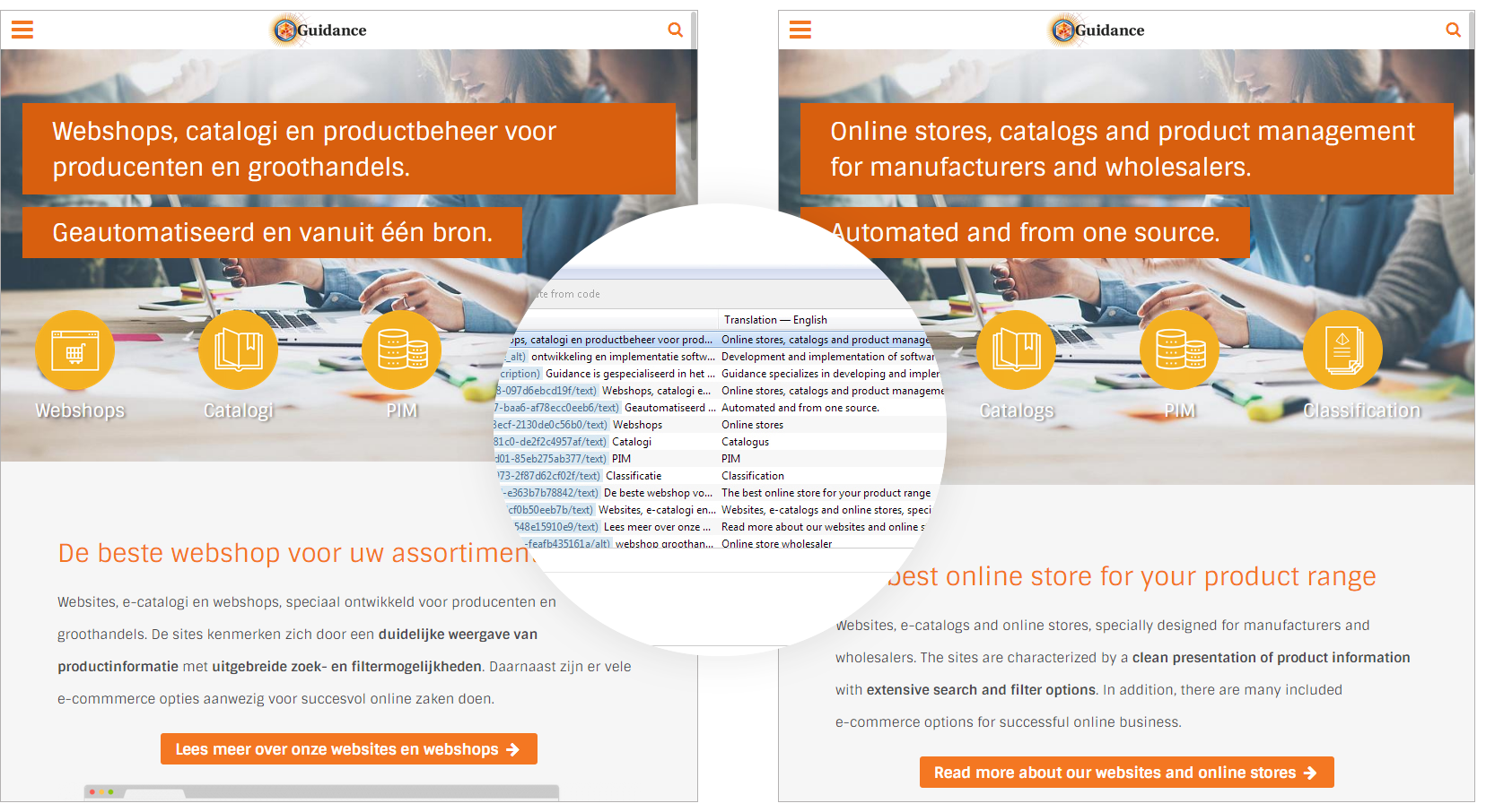 De kracht van het .po bestand is dat de vertaalde teksten exact op de juiste plekken in de website terugplaatst. De vertalingen zullen dus direct in de juiste vormgeving worden gezet, exact hetzelfde als het origineel.