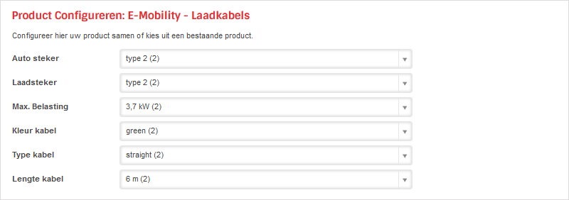 Dat heeft het bedrijf Ratio (leverancier van o.a. laadkabels voor elektrische auto’s) opgelost door het aanbieden van een productconfigurator. Op de Ratio website is een groot assortiment aan laadkabels beschikbaar in verschillende lengtes en stekkertypes. Na het invullen van de productconfigurator is het juiste product zichtbaar en kan uw klant deze direct aanvragen.