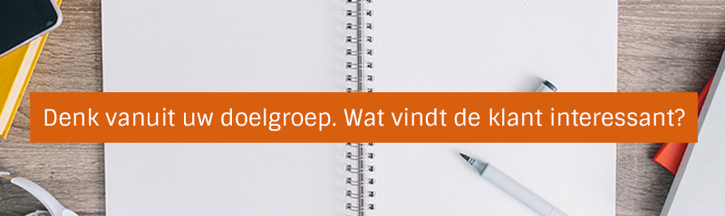 Houd bij het brainstormen voor artikelen altijd uw doelgroep in gedachten. Wat zal de doelgroep interessant vinden? Waar zouden ze graag meer over willen lezen? Maak eventueel een doelgroep analyse.
