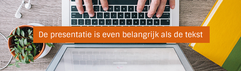 Naast het schrijven van een goed artikel is de presentatie ervan net zo belangrijk, Nodigt de tekst niet uit tot lezen, dan zal de bezoeker de pagina direct weer verlaten.