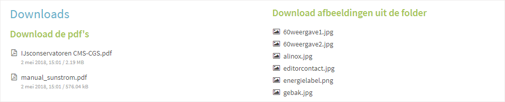 In de Stentor 6 webeditor zijn er twee opties om downloads op de pagina te plaatsen. Dit kan per stuk, waarbij elk document afzonderlijk wordt geplaatst, of als een complete map. Via de Stentor image kiezer kan een hele map worden gekozen, waarna alle documenten in de map als downloads onder elkaar weergegeven worden.