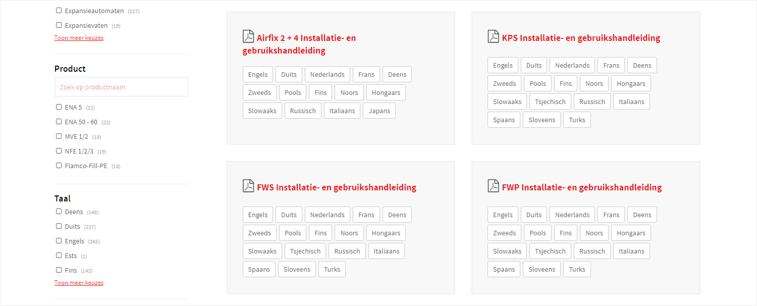 Ook het automatiseren van de downloadpagina is mogelijk. Zo werken bijvoorbeeld Flamco en HSF met de ‘Docfinder’; een online downloadpagina waar ook in gezocht en gefilterd kan worden. De documenten en structuur van de Docfinder worden beheerd in een externe bron die de gegevens gemakkelijk naar de website exporteert.
