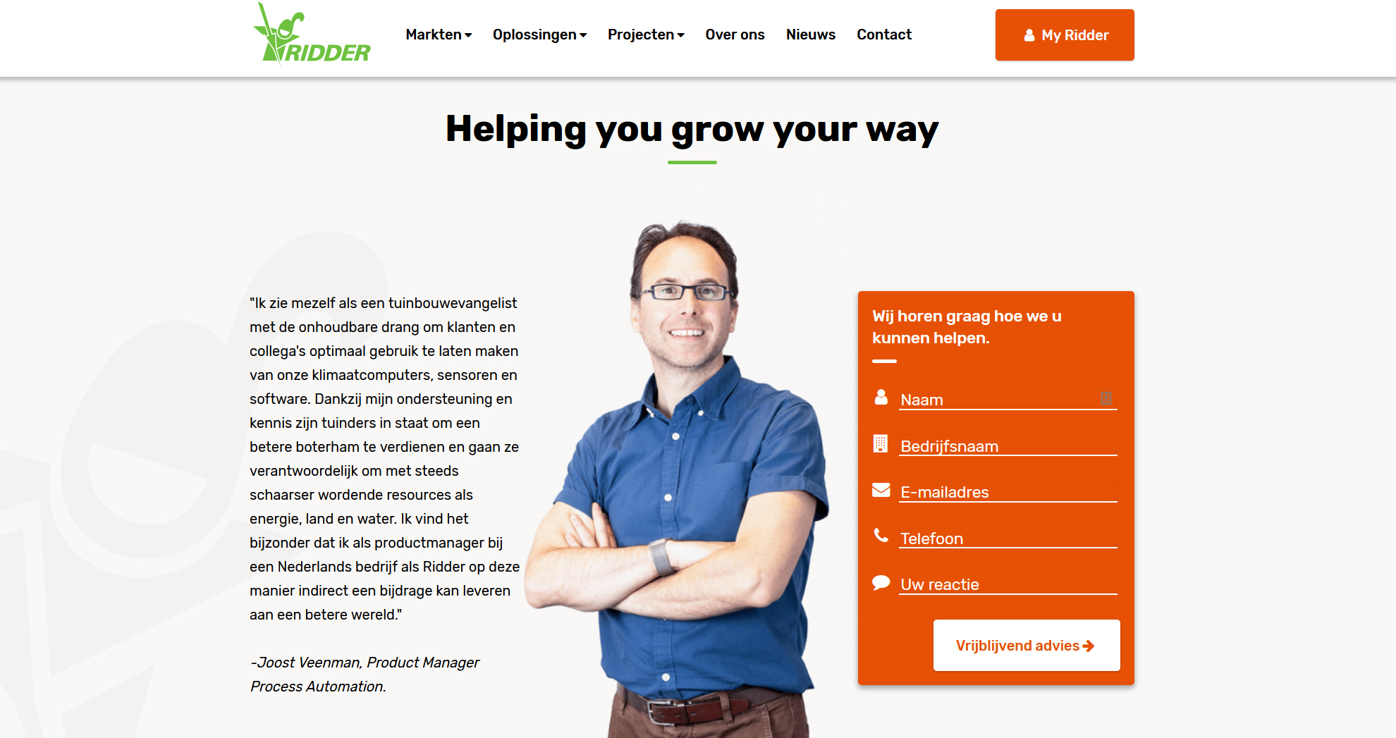 Ridder maakt gebruik van een mooi vormgegeven custom formulier voor de aanvraag van meer informatie.