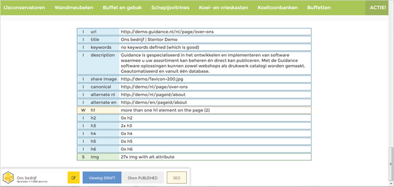 Zijn je pagina’s eigenlijk wel goed opgebouwd en bevatten ze de juiste elementen om goed gevonden te worden in de zoekmachines? De Stentor webeditor heeft een ingebouwde SEO check die aangeeft wat er allemaal wel en niet klopt aan de pagina. En dit kan je hierna direct via de webeditor aanpassen.